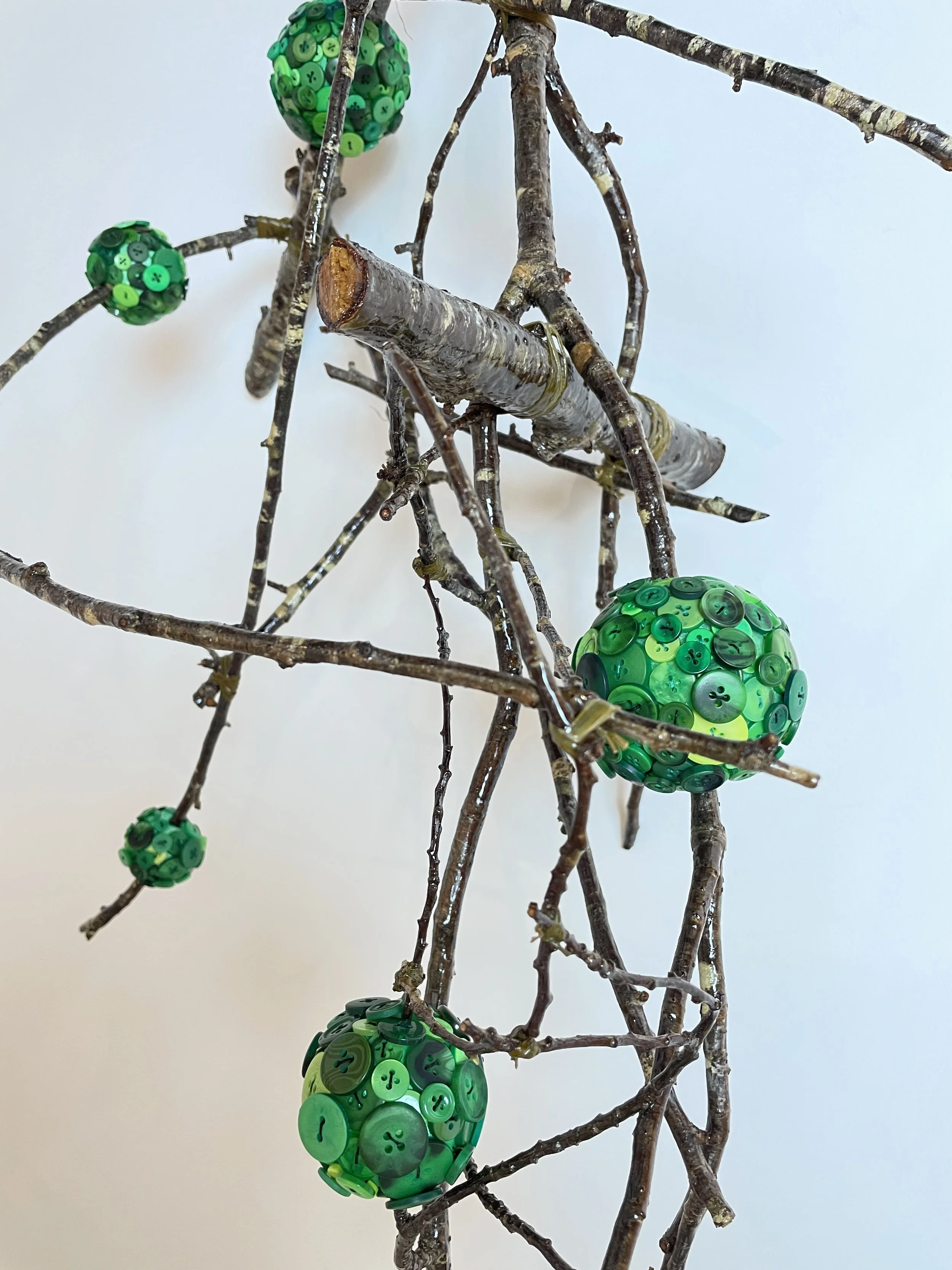 “El Bulli-Vert” 42 x 21 x 18in  branches, organza, buttons 2022